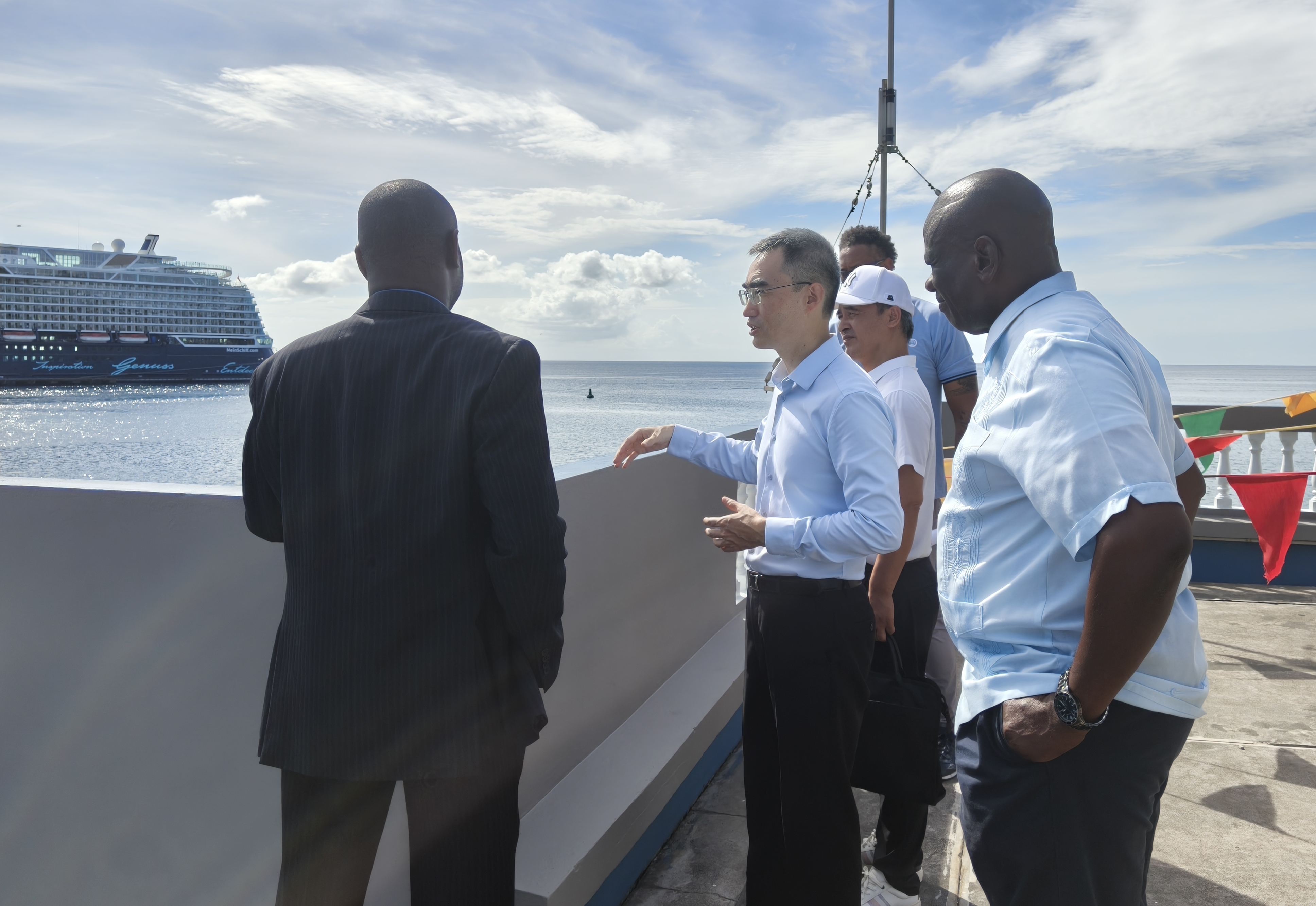 2025年11月5日,杨舒大使会见格林纳达蓝色经济与海洋事务部常秘威廉姆斯,就中格蓝色经济领域务实合作、激活海洋资源价值、推动可持续发展等交换意见,并考察了圣乔治内港和梅尔维尔街渔港。