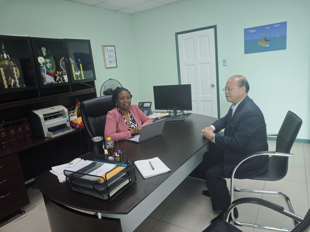 2024年9月25日,韦宏添大使拜会格林纳达新任青年和体育部长德尔玛·托马斯,就中格务实合作交换意见。
